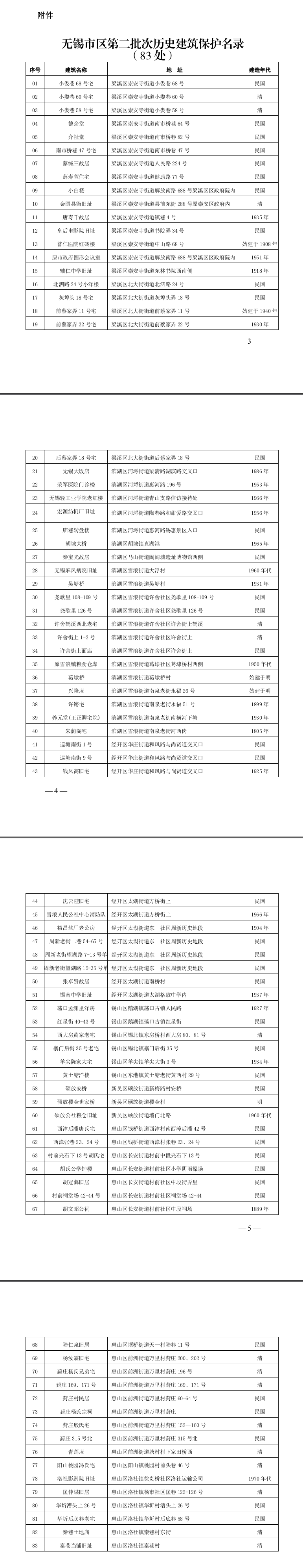 附件:無錫市區(qū)第二批次歷史建筑保護(hù)名錄(83處)