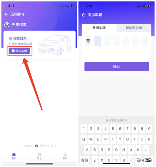 第二步:點(diǎn)擊【添加車牌】,輸入您的車牌號碼綁定(最多可以添加3個(gè)車牌號碼);