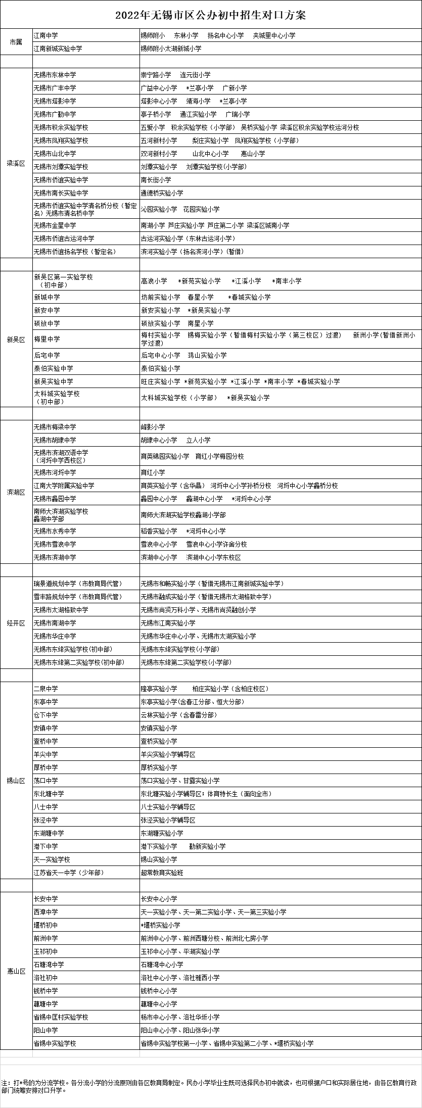2022年無錫市區(qū)公辦初中招生對(duì)口方案 |