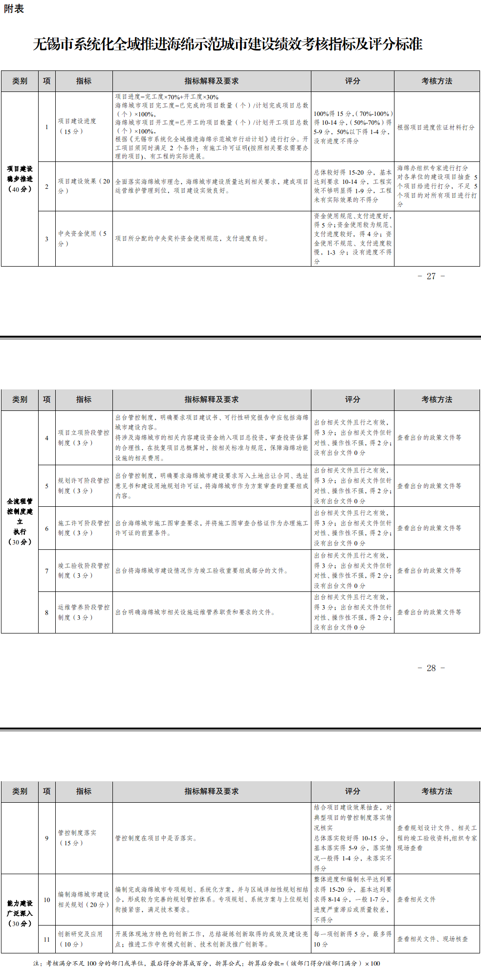 附表:無錫市系統(tǒng)化全域推進(jìn)海綿示范城市建設(shè)績(jī)效考核指標(biāo)及評(píng)分標(biāo)準(zhǔn)