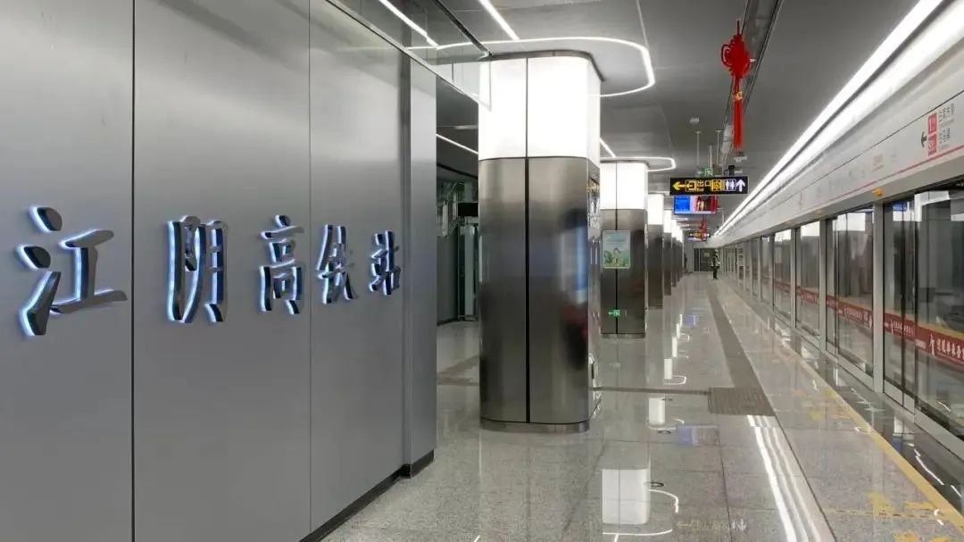 江陰高鐵站毗鄰滬寧沿江高鐵江陰站,臨近江陰主干道梅園大街、霞客大道,是S1線占地面積最大,出入口最多,交通換乘最便利、多樣化的車站。車站整體設(shè)計(jì)以大氣明亮為主體,燈光設(shè)計(jì)簡潔干練,站廳吊頂?shù)姆侄问讲ɡ嗽O(shè)計(jì)以及閉環(huán)式燈光條體現(xiàn)著錫澄兩地互聯(lián)互通,未來發(fā)展欣欣向榮的含義。