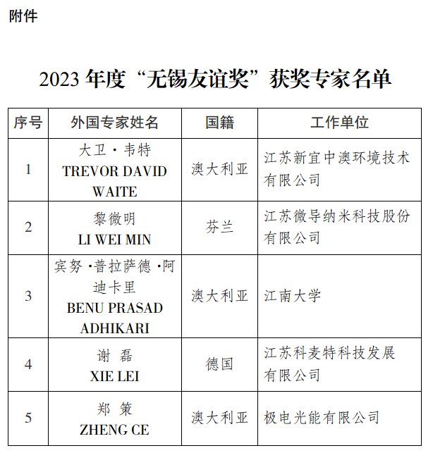 附件:2023年度“無(wú)錫友誼獎(jiǎng)”獲獎(jiǎng)專(zhuān)家名單