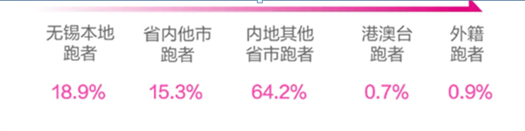以無錫馬拉松為例,無錫本地跑者占比僅為18.9%, 65.8%的跑者來自江蘇省外。