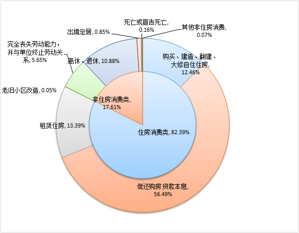 2025年一季度,住房消費(fèi)類提取金額為60.86億元,環(huán)比增長7.93%,占當(dāng)季提取額的82.39%。其中還貸提取占比最高,提取金額41.73億元,占當(dāng)季提取額的56.49%。具體提取結(jié)構(gòu)如下: